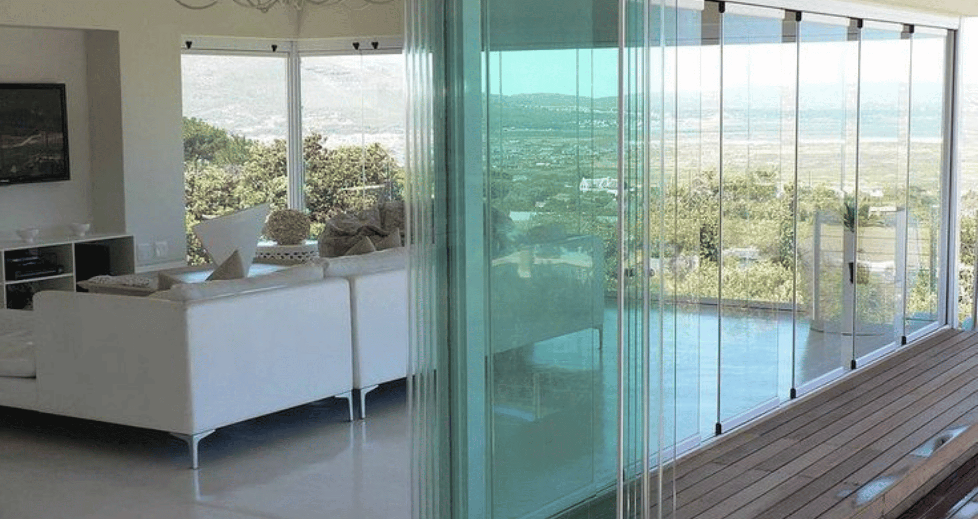 Com vidros temperados de alta resistência sob um sistema de roldanas em aço inox blindado garante praticidade na abertura das folhas, vedação eficiente contra vento e chuva, além de contribuir para o isolamento acústico.